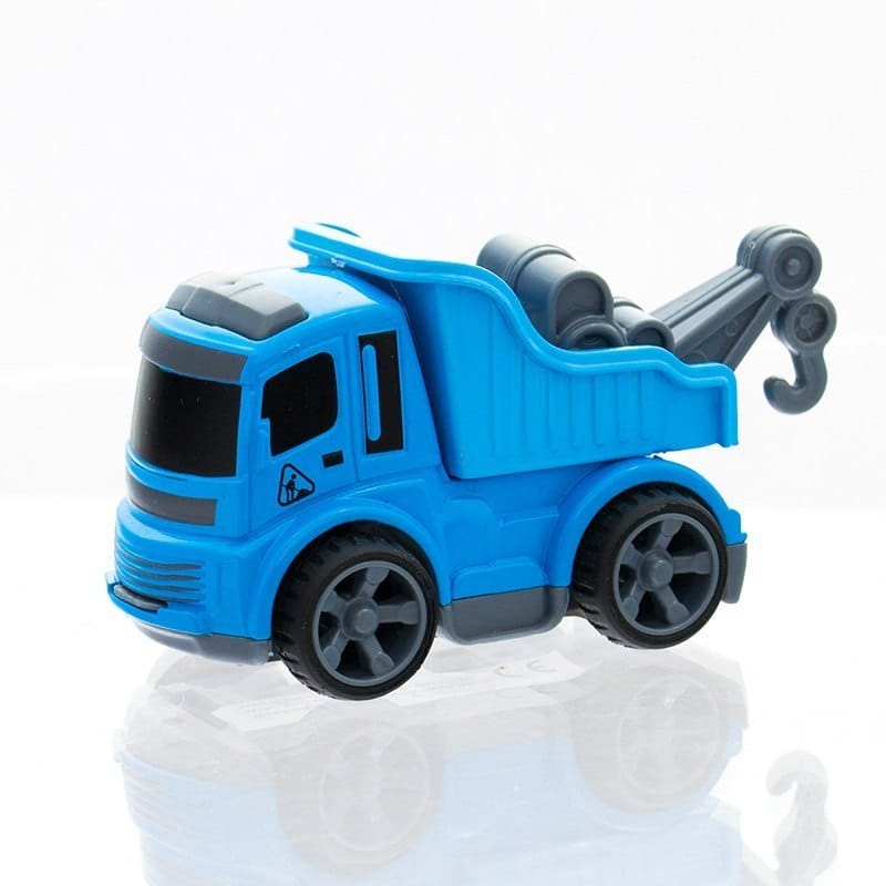Zabawka metalowe autko (sprzęt ciężki) z napędem mechanicznym. Dostępna w trzech wersjach, w każdej dwa dostępne kolory: - Holownik: (niebieski; pomarańczowy) - Betoniarka: (biały; niebieski) - Koparka: (zielony; żółty) Każda z wersji posiada element charakterystyczny, który porusza się, gdy pojazd jest w ruchu. Informacja techniczna Wymiary opakowania: wysokość: 11cm szerokość: 8cm długość: 11,5cm Wymiary pojazdu wysokość: 7cm szerokość: 5cm długość: 9cm Wiek dziecka: 18 miesięcy +