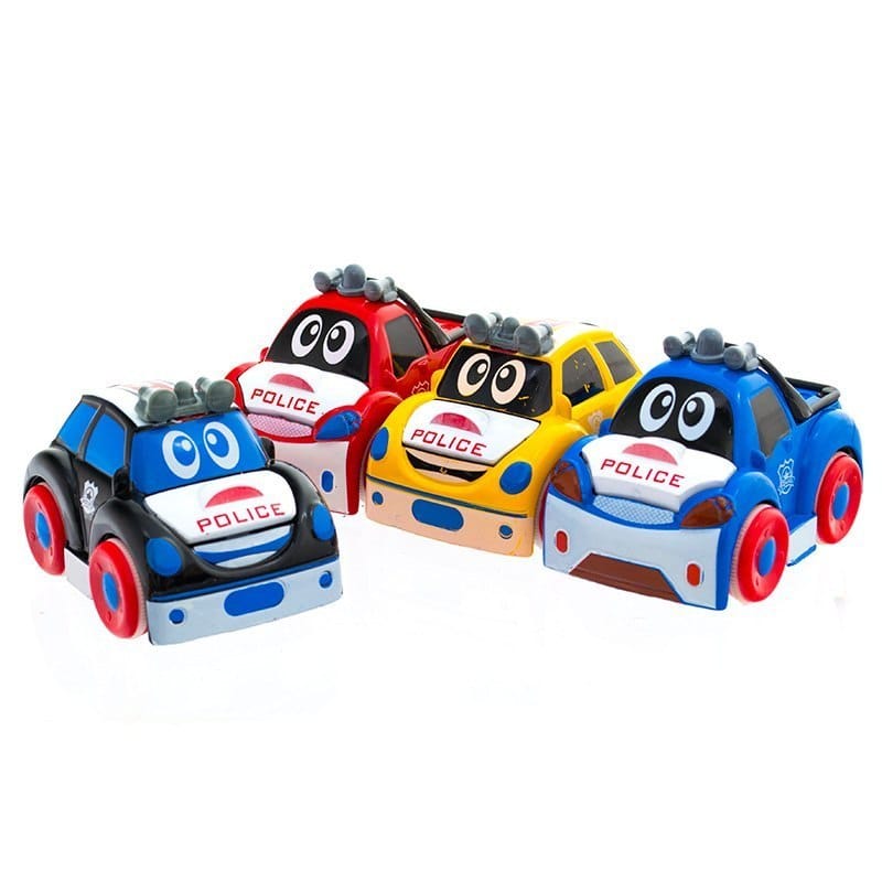 Zabawka metalowe autko (policja) z napędem mechanicznym. Dostępna w czterech wersjach kolorystycznych: - niebieski - czarny - żółty - czerwony Każda z wersji posiada maskę, która porusza się, gdy pojazd jest w ruchu. Informacja techniczna Wymiary opakowania: wysokość: 10cm szerokość: 10cm długość: 12cm Wymiary pojazdu wysokość: 5,5cm szerokość: 5cm długość: 8cm Wiek dziecka: 18 miesięcy +