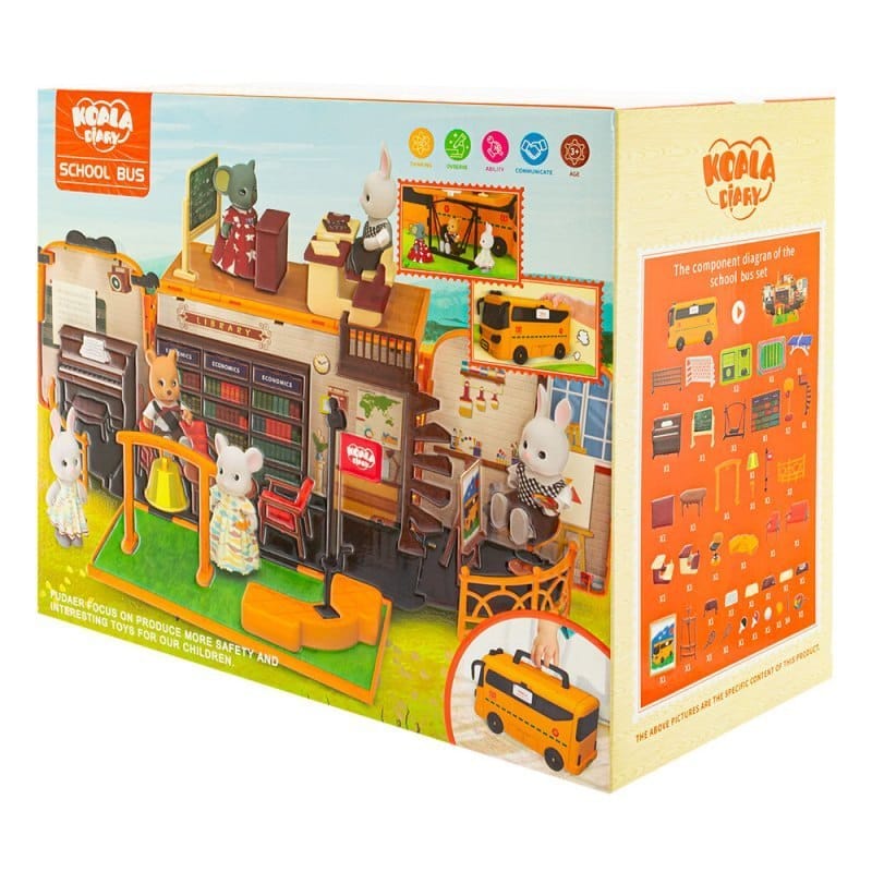 Zabawka autobus - biblioteka. Żółty niepozorny autobus skrywa w sobie prawdziwą niespodziankę dla małych odkrywców. Ten pojazd zamienia się w miejsce dla miłośników książek-bibliotekę. Otwierany dach oraz boki autobusu zupełnie zmieniają perspektywę zabawy, dlatego zastosowanie tej zabawki jest wszechstronne. W zestawie znajdują się również 2 rozkładane plansze boisk sportowych (piłka nożna, koszykówka). Autobus może służyć również jako zabawka pojazd. Posiada wygodny uchwyt to przenoszenia i jest doskonałym schowkiem do przechowywania. Zabawka wykonana jest wysokiej jakości trwałego i bezpiecznego plastiku. W zestawie m.in. -zabawka autobus -2x plansza (boisko sportowe) -bramki do gry -pianino -barierki -huśtawka I wiele, wiele innych. Wymiary: Opakowanie: 32x26x17cm Zabawka: 30x15x15cm Wiek: 3+