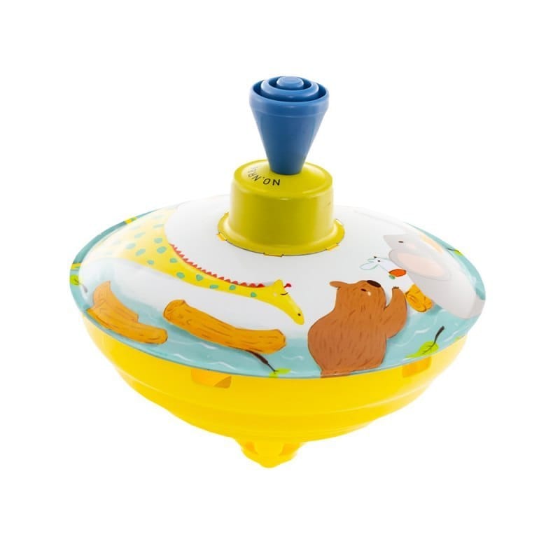 Zabawka bączek to jedna z najstarszych zabawek na świecie. Wprawiana jest w ruch za pomocą tłoczka. Górna część bączka wykonana jest z metalu z piękna kolorowa grafiką. Średnica: 13 cm Wysokość: 13 cm Opakowanie: 15.5 x 11.5 x 12 cm Wiek: 3+