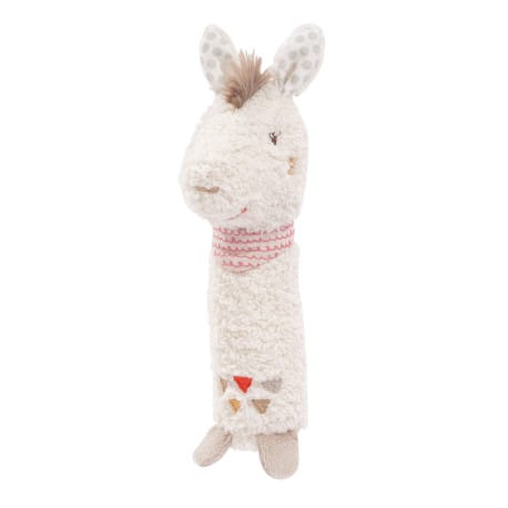 Zabawka do rączki z piszczałką, Lama Maya, z kolekcji: Peru Stworzona dla małych rączek, delikatna w dotyku, urocza maskotka Lama, z kolekcji: Peru, szybko zdobędzie serce dziecka. Przyjazna Lama pochodząca z Machu Picchu z peruwiańskich Andów, piszczy radośnie, gdy dziecko ją ściska. Posiada w środku grzechotkę.To budzi ciekawość dzieci, pobudza pierwsze ćwiczenia chwytania. Delikatne uszka służą do ssania i ciągnięcia i szarpania. Doskonały towarzysz w domu i podczas podróży, urocza Lama pomaga zrozumieć świat. Rozwija i pobudza zmysły. Doskonali zdolności motoryczne. Posiada w środku grzechotkę. Rozmiar: 17 cm. Wszystkie zabawki niemieckiej marki FEHN są bezpieczne dla dzieci od 0 lat. Wykonane są z najlepszej jakości materiałów. Spełniają normy EN71, CE, badane w instytutach ""Stiftung Warentest"" lub ""Ökotest”. 58161