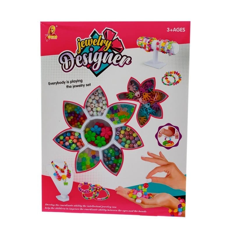 Kreatywny zestaw do tworzenia własnej biżuterii. Rozwija zdolności manualne oraz ćwiczy precyzję oko - ręka. Rozwija u dziecka kreatywność.  Zawartość zestawu: - 8 rodzajów koralików - sznurek  Produkt przeznaczony dla dzieci powyżej 3 roku życia.  Wymiary pudełka: 33 x 25 x 3 cm