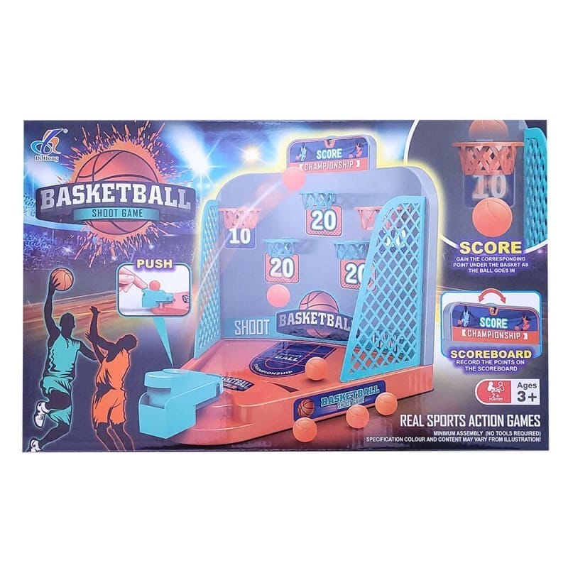 Zabawka koszykówka Graj w koszykówke poprzez jedno kliknięcie! Wystarczy, że naciśniesz guzik, a piłka poleci w stronę kosza! Po przejściu możesz naliczać punkty na górnej części zabawki. Bardzo łatwa w montażu, bez konieczności używania zewnętrznych urządzeń. Wymiary: 40.5x25.5x6 cm Wiek: 3+