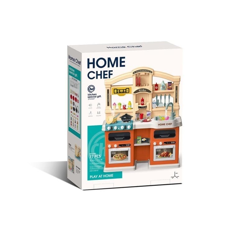 Zabawka Kucharz Domowy EBZ922-160 - Kulinarna Przygoda dla Małego Szefa Kuchni! Zabawka Kucharz Domowy EBZ922-160 to idealny zestaw dla dzieci, które uwielbiają zabawy w gotowanie. Bogato wyposażona kuchnia z realistycznymi funkcjami, dźwiękami oraz efektami świetlnymi i parą wodną to doskonały sposób na rozwijanie kreatywności, wyobraźni i zdolności manualnych. Dzięki aż 77 elementom dziecko poczuje się jak prawdziwy kucharz w profesjonalnej kuchni. Główne cechy zestawu: Realistyczne funkcje kuchni: Para wodna z garnka: Symulacja gotującej się wody dodaje realizmu i fascynuje maluchy. Efekty dźwiękowe: Kuchenka wydaje realistyczne odgłosy gotowania, co wzbogaca zabawę. Panel multifunkcyjny: Innowacyjne funkcje sterowania pozwalają na interaktywną zabawę. Bogate wyposażenie kuchni: Kuchenka z palnikami: Dzieci mogą „gotować" swoje ulubione dania. Piekarnik i mikrofalówka: Otwierane drzwiczki i wnętrza naśladujące prawdziwe sprzęty kuchenne. Zlew z kranem: Pozwala „zmywać" naczynia i dbać o porządek. Garnki i naczynia: Komplet zawiera talerze, miseczki i inne akcesoria kuchenne. Produkty spożywcze: Kolorowe warzywa, owoce i inne imitacje jedzenia pobudzają wyobraźnię dziecka. Solidna konstrukcja: Stabilna i trwała kuchnia wykonana z wysokiej jakości materiałów zapewnia długą i bezpieczną zabawę. Zalety zabawy w gotowanie: Rozwój kreatywności: Dzieci mogą tworzyć swoje własne przepisy i scenariusze zabawy. Nauka przez zabawę: Zestaw pozwala poznać podstawowe czynności kuchenne i rozwija umiejętności manualne. Interaktywna rozrywka: Efekty dźwiękowe, świetlne i para wodna angażują dziecko na dłużej. Zabawa w grupie: Zestaw idealnie sprawdzi się podczas wspólnej zabawy z rodzeństwem czy przyjaciółmi, rozwijając umiejętności społeczne. Rozwijanie samodzielności: Maluch uczy się planowania i wykonywania zadań w kuchni. Dlaczego warto wybrać Kucharza Domowego EBZ922-160? Realistyczne funkcje zachęcające do aktywnej i kreatywnej zabawy. Bogate wyposażenie gwarantuje wszechstronną i różnorodną zabawę. Zabawka edukacyjna wspierająca rozwój dziecka w przyjemny i angażujący sposób. Zestaw Kucharz Domowy EBZ922-160 to nie tylko świetna zabawa, ale także narzędzie edukacyjne rozwijające zdolności malucha. Spraw swojemu dziecku wyjątkowy prezent, który zapewni godziny radości i nauki! Dane techniczne: Wiek: 3+ Wymiary pudełka: 70 x 52 x 18 cm Wymiary złożonej kuchni: 83 x 66 x 24 cm Zawartość zestawu: 77 elementów, w tym: Kuchenka z panelami sterowania Piekarnik i mikrofalówka Zlew z kranem Garnki, naczynia, talerze, sztućce Produkty spożywcze: warzywa, owoce i inne Akcesoria kuchenne