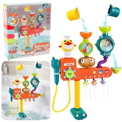 Zabawka została wyposażona w mini słuchawkę prysznicową, którą dziecko może uruchomić poprzez naciśnięcie kaczuszki. Aby zapewnić stały dopływ wody, wystarczy zanurzyć dolną rurkę zabawki w wannie. Całość można stabilnie przymocować do ściany łazienki lub wanny za pomocą przyssawek, co zwiększa komfort i bezpieczeństwo użytkowania.