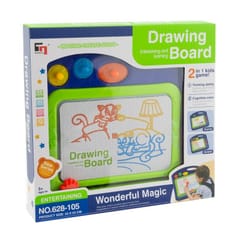 Tablica do rysowania znikopis. Na panelu możemy tworzyć dowolne rysunki za pomocą magnetycznego długopisu. W każdej chwili możemy wymazać rysunek posługując się suwakiem w dolnej części tablicy. Do zabawki dołączone są 3 pieczątki magnetyczne. Wszystkie elementy służące do rysowania można umieszczać w specjalnych uchwytach na tablicy. Panel do rysowania podzielony jest na 4 strefy kolorystyczne. Zabawki EURObaby wykonane są z wysokiej jakości materiałów oraz zapakowane są w estetyczne pudełka, dzięki czemu idealnie nadają się na prezent. Wspomaga: - rozwój sensoryczny - rozwój umiejętności motorycznych - rozwój koordynacji wzrokowo ruchowej - Kreatywność i zainteresowania dziecka Zawartość opakowania: - Tablica - Długopis magnetyczny - 3 pieczątki magnetyczne Rozmiar zabawki: 23 x 21 cm Rozmiar opakowania: 23 x 22 x 3 cm Wiek: 3+