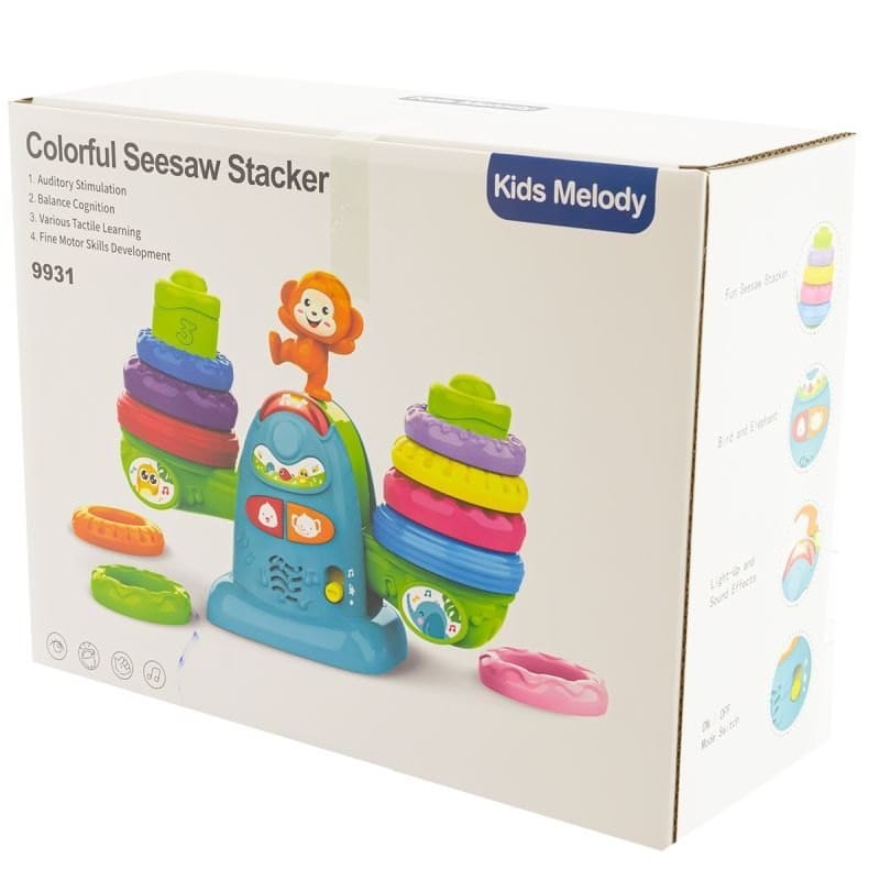Grając z tą zabawką, Twoje dziecko będzie miało okazję nauczyć się, jak działa waga. Na obu stronach wagi znajdują się specjalne kółeczka, które można nakładać na słupek. Jeżeli na jednym słupku nałożymy mniej kółek, waga przechyli się na jedną stronę. Ta fascynująca funkcja zmusza dzieci do logicznego myślenia i świetnie rozwija ich umiejętności analityczne.