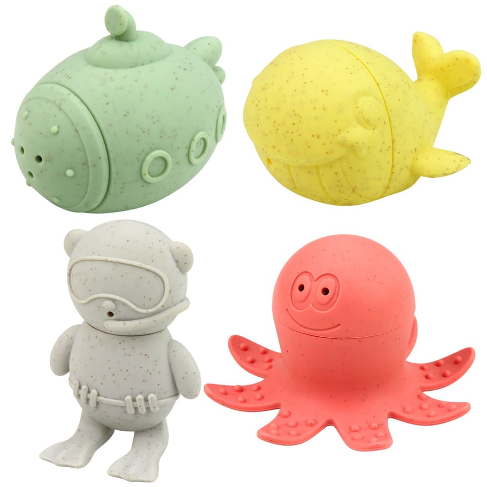 Zabawki zostały zaprojektowane tak, aby łączyć funkcję edukacyjną z radością płynącą z zabawy. Po wlaniu wody do środka i ściśnięciu figurki woda wydostaje się przez specjalne otwory w formie pryskającego strumienia, co sprawia dziecku dodatkową frajdę i zachęca do aktywnej zabawy. Różnorodne kształty oraz pastelowe kolory przyciągają uwagę malucha i stymulują jego zmysły.