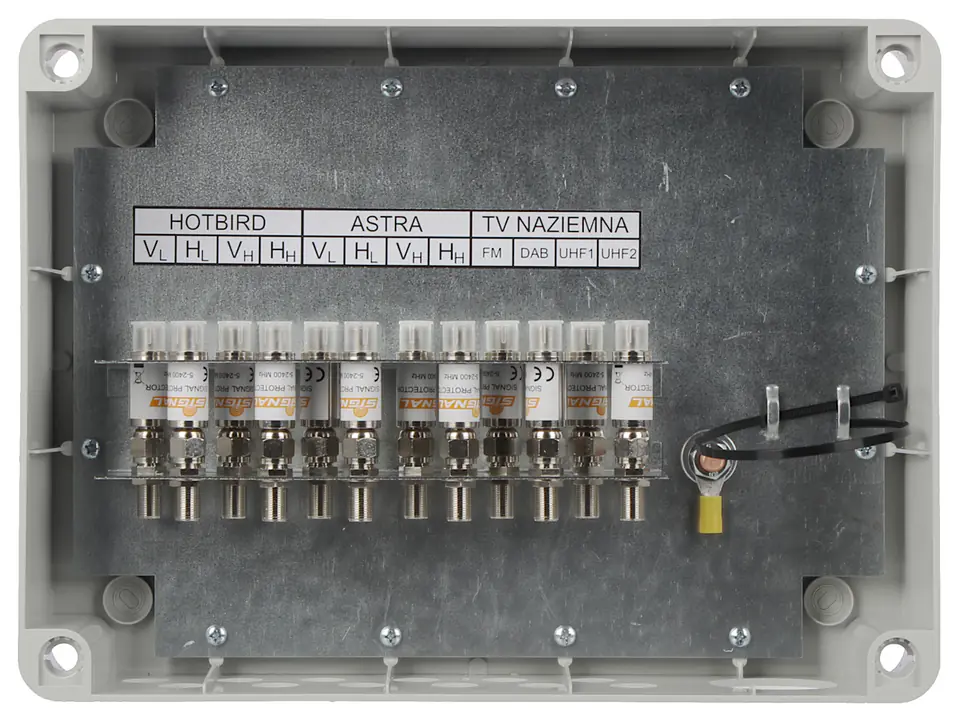 Zestaw PP-ZPP-4645F/12F to zintegrowane rozwiązanie zaprojektowane w celu zapewnienia kompleksowej ochrony zbiorczych instalacji telewizyjnychPrzeznaczeniem zestawu jest zabezpieczenie instalacji multiswitchowej przed skutkami przepięć powstałych w wyniku wyładowań atmosferycznych
