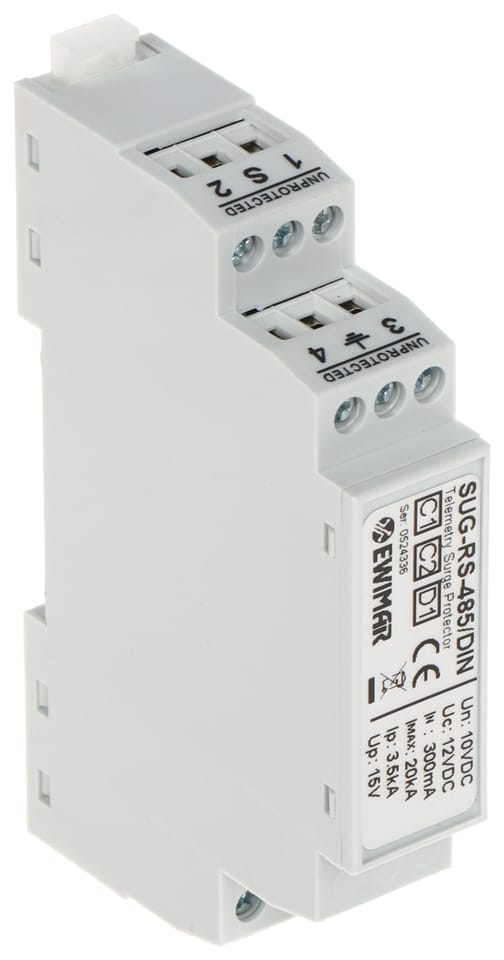 Urządzenie SUG-RS485/DIN przeznaczone jest do zabezpieczenia magistrali RS-485 przed przepięciami, wywołanymi wyładowaniami atmosferycznymi oraz różnicami potencjałówSUG-RS485/DIN jest przewidziany do montażu na szynie DIN 35 mm