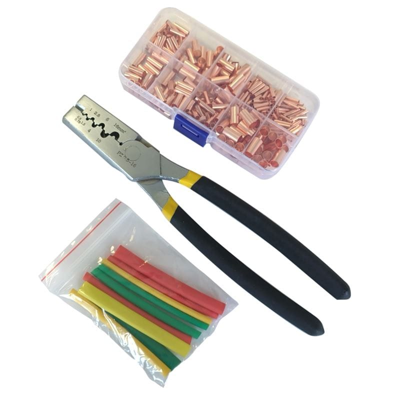 Zaciskarka do tulejek kablowych + 250 szt. tulejek bez izolacji + termokurczki ZESTAW