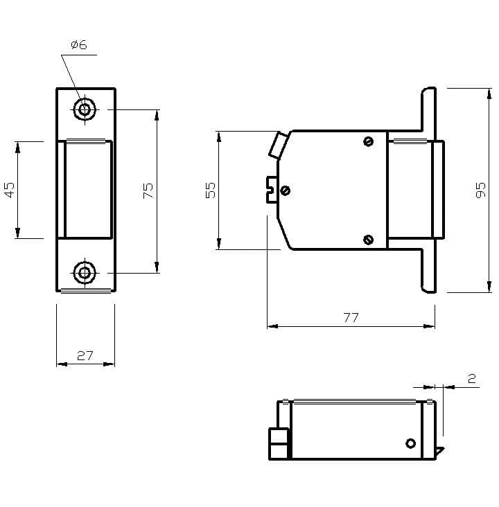 - wymiary zewnętrzne obudowy: 27 x 55 x 77 mm