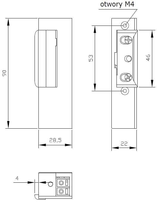- Wymiary zewnętrzne obudowy: 22 x 28 x 90 mm