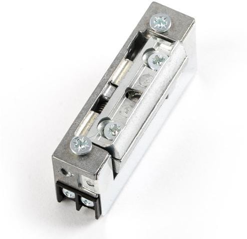 Zaczep elektromagnetyczny typu R5-24.13 przeznaczony jest do drzwi i furtek z kształtowników metalowych, do współpracy z zamkiem zapadkowo-zasuwkowym lub zapadkowymDziała rewersyjnie - otwarty przy braku napięcia zasilającego