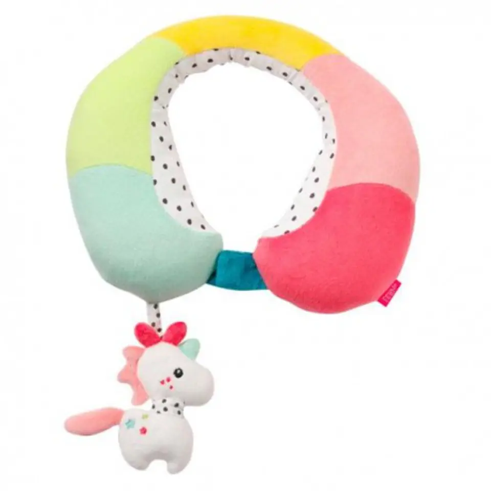 Zagłówek Podróżny Jednorożec, z Kolekcji: Aiko i Yuki Niezależnie od tego, czy chodzi o fotelik dziecięcy, fotelik samochodowy czy wózek: pięknie wykonany zagłówek podpierający kark, z kolekcji: Aiko i Yuki, jest doskonałym towarzyszem podróży. Idealnie dopasowuje się do szyi dziecka dzięki ergonomicznemu kształtowi. Niezawodnie wspiera i uwalnia kręgosłup szyjny oraz barkowy dziecka od obciążeń i wstrząsów podczas długich podróży. Zabezpiecza główkę dziecka przed pochylaniem się do przodu. Przytulne, miękkie tkaniny w pięknych kolorach, zapewniają wygodne dopasowanie i zachęcają do spokojnego snu. Obudzone dziecko po jeździe jest zrelaksowane i w dobrym nastroju. Dodatkowo mały Jednorożec z grzechotką w środku zaprasza do zabawy. Wygodne zapięcie na rzep ułatwia zastosowanie. Zagłówek podróżny z maskotką - grzechotką zapinany na rzep. Zapewnia komfort podczas podróży. Niezawodnie wspiera i chroni kręgosłup od wstrząsów i obciążeń. Mały Jednorożec - grzechotka zaprasza do zabawy. Materiał: plusz, welur. Pranie ręczne w temp. 30C. Wymiary maskotki: 10 cm x 5 cm. Wymiary opakowania: 30 cm x 23 cm x 5 cm. Wiek: od 6 miesięcy. Wszystkie zabawki niemieckiej marki FEHN są bezpieczne dla dzieci od 0 lat. Wykonane są z najlepszej jakości materiałów. Spełniają normy EN71, CE, badane w instytutach "Stiftung Warentest" lub "Ökotest". FE57294