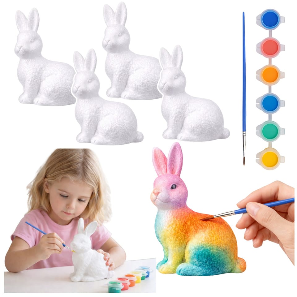 ? ZAJĄCZKI STYROPIANOWE DO MALOWANIA 6 SZTUK Z FARBKAMI ?