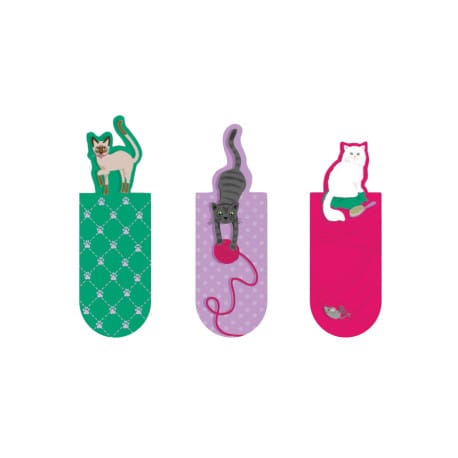 Zakładki magnetyczne - Koty bawiące się Pięknie ilustrowane zakładki z wystającymi, ozdobnymi elementami. Idealne do zaznaczania ostatnio czytanych lub ulubionych fragmentów książek. Doskonale sprawdzają się w indeksowaniu notatek, dokumentów w biurze, w szkole i w domu. Każdy zestaw zawiera 3 zakładki o różnych wzorach. Wymiary : 5,5 cm, 2 cm. 31098