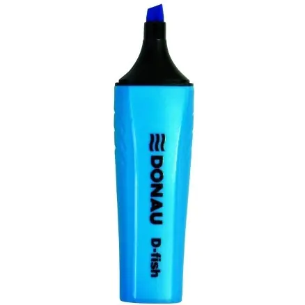 Zakreślacz D-FISH, Donau do znaczenia tekstu na praktycznie kazdy DURABLEm rodzaju papieru nietoksyczny tusz charakteryzuje sie wysoką wydajnością oraz trwalością nie rozmazuje sie gumowane boki obudowy gwarantują komfort kreślenia oraz zapobiegają wyślizgiwaniu sie zakreślacza z dloni specjalnie profilowany klips ulatwia zdejmowanie skuwki koncówka ścieta grubośc linii pisania: 1-5mm dlugośc linii pisania: 170m dostepny w 6 zywych kolorach mix kolorów dostepny w etui (4/6 kolorów w j.s.) jednostka sprzedazy 1 sztuka lub etui