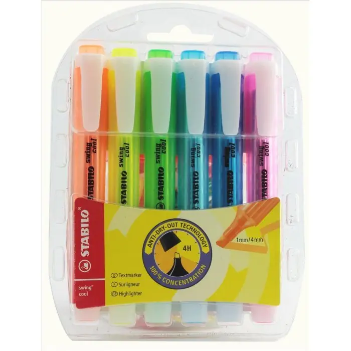 Kolorowe ZAKREŚLACZE zestaw STABILO SWING COOL 6 sztuk w etui