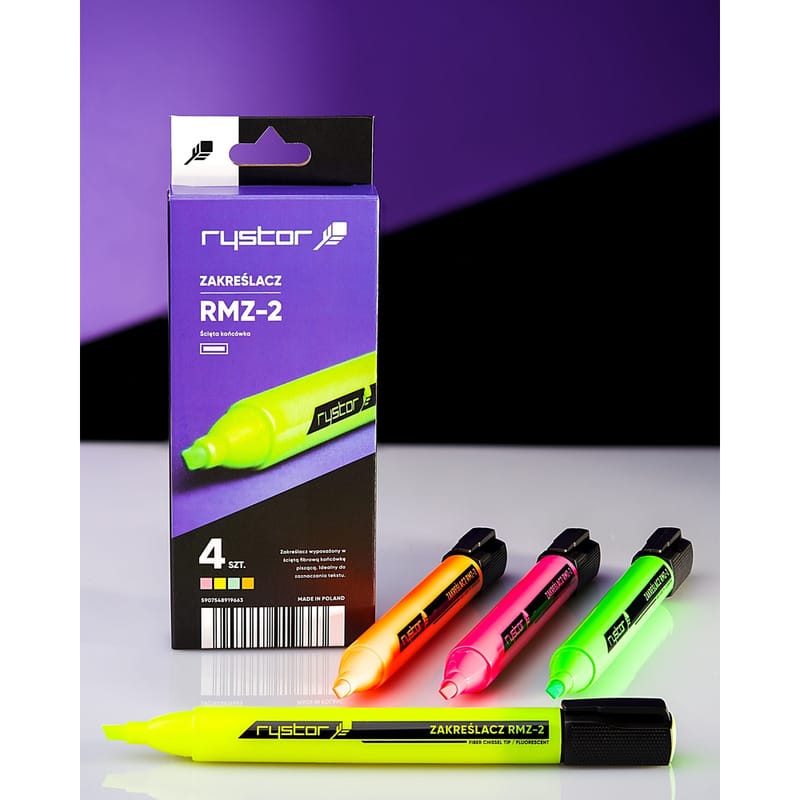 * zakreślacz wyposażony w ściętą fibrową końcówkę piszącą * idealny do zaznaczania tekstu * fluorescencyjny tusz do stosowania na różnych rodzajach papieru, również faxowym i samokopiującym * ścięta końcówka pisząca * szybkoschnący, nietoksyczny tusz, nie rozmazuje zaznaczanego tekstu * wodoodporny * nie blaknie pod wpływem promieni słonecznych * czarna nasadka * korek w nasadce oraz obudowie określają kolor tuszu