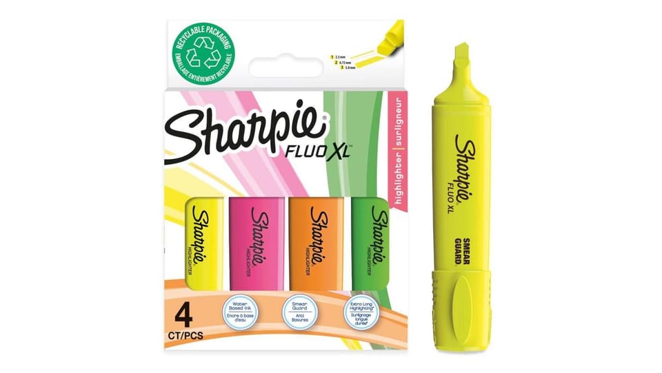 Zakreślacz fluo XL 4kol. SHARPIE 2190473 Zakreślacze Sharpie Fluo XL Highlighter Blister 4 szt
