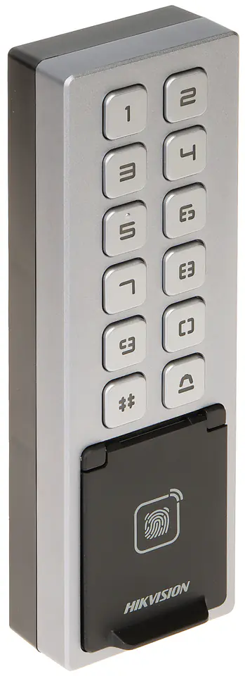 Zewnętrzny, autonomiczny zamek szyfrowy z czytnikiem odcisku palca oraz RFIDUrządzenie pozwala na identyfikację użytkownika za pomocą odcisku palca, karty RFID, kodu PIN, lub kombinacji powyższychW przypadku zastosowania aplikacji mobilnej HikCentral Access Control istnieje możliwość identyfikacji za pomocą interfejsu bluetooth