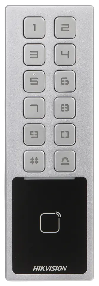 Wewnętrzny, autonomiczny zamek szyfrowy z czytnikiem RFIDUrządzenie pozwala na identyfikację użytkownika za pomocą karty RFID, kodu PIN, lub kombinacji powyższychW przypadku zastosowania aplikacji mobilnej HikCentral Access Control istnieje możliwość identyfikacji za pomocą interfejsu bluetooth