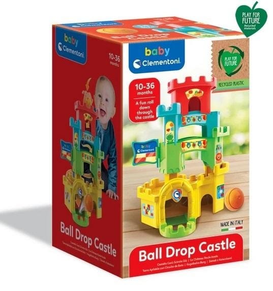 Gdy maluch upuści piłkę w środek gotowej konstrukcji, przemierzy ona wszystkie poziomy zamku i wyląduje na dziedzińcu.