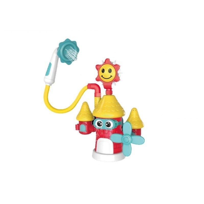 Zamek z prysznicem Wejdź do królestwa wodnej zabawy i odkryj wszystkie jego niespodzianki! Ten kolorowy zamek umożliwia zabawę aż na 4 różne sposoby, a to za sprawą dołączonych do zestawu końcówek, które można zamieniać ze sobą miejscami. Każda z końcówek tryska wodą w inny sposób. Znajdziemy tu uśmiechnięte słoneczko, wiatraczek oraz dwie końcówki prysznicowe, krótszą i dłuższą, z wężykiem. Wszystko co musisz zrobić to umieścić zabawkę w wodzie, aby była zanurzona na głębokość ok. 6cm i nacisnąć przycisk, znajdujący się na szczycie największej wieży. Przekonaj się jak wesoła może być kąpiel! Cechy zabawki: - 4 wymienne końcówki - 4 możliwości zabawy: długi prysznic, mały prysznic, słoneczko, wiatrak; - możliwość odczepienia małej wieżyczki i nabierania w nią wodę; - umieść zabawkę w wodzie (powinna być zanurzona na głębokość 6cm), aby mogła pobierać wodę; - uruchom wytryskiwanie wody poprzez naciśnięcie żółtego przycisku na szczycie największej wieżyczki; - baw się, zmieniając miejscami końcówki; Baterie: 4 x AAA (niezawarte w zestawie); Wiek: 18m+