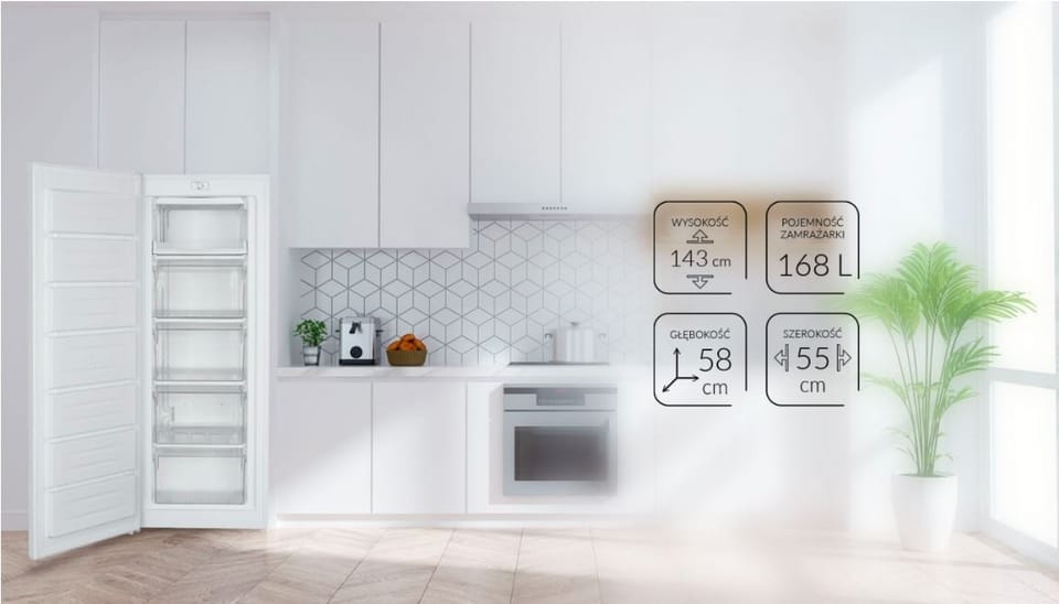 Doceń możliwości przechowywania żywności w zamrażarce skrzyniowej! Niewielki rozmiar wysokość 143 cm, szerokość 55 cm i głębokość 58 cm - masa urządzenia wynosi 43kg netto/47kg brutto i duża pojemność zamrażania 168 l to jej ogromne zalety. Dodatkowo zamrażarka szufladowa MPM-182-ZS-14 o mocy 100W jest cicha (poziom hałasu LWA = 40 dB) i pobiera niewiele prądu (roczne zużycie energii elektrycznej 190 kWh/rok) o klasie energetycznej E. Wyposażona została także w 5 przedziałów do przechowywania oraz foremki do wytwarzania lodu kostkowego.