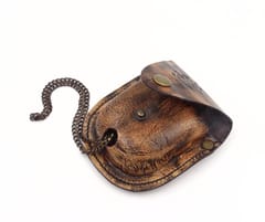 Zamykany kompas z łańcuszkiem w skórzanym etui C-64