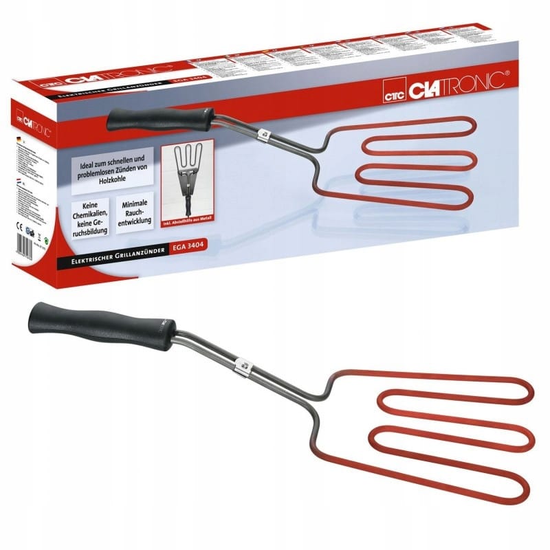 NAJWYŻSZEJ JAKOŚCIELEKTRYCZNA ZAPALARKADO GRILLA WĘGLA ROZPAŁKARENOMOWANEJ FIRMY CLATRONICmodel: EGA 3404Elektryczna zapalarka do grilla Clatronic EGA 3404 dla wszystkich miłośników grillowania. Dzięki temu małemu urządzeniu nigdy nie będziesz musiał długo czekać, aż podpałka zapłonie, a z nią – brykiet lub węgiel.Rozpocznij grillowanie łatwo i bez nerwów. Wystarczy tylko elektryczna zapalarka do grilla Clatronic EGA 3404 i to wszystko. To urządzenie niezwykle funkcjonalne i niezawodne.Urządzenie dzięki któremu nigdy nie będziesz musiał czekać, aż podpałka zapłonie, a z nią – brykiet lub węgiel. Rozpocznij grillowanie łatwo i bez nerwów. Wystarczy tylko elektryczna zapalarka do grilla Clatronic EGA 3404 i to wszystko.Clatronic EGA 3404 to urządzenie dzięki któremu nigdy nie będziesz musiał czekać, aż podpałka zapłonie, a z nią – brykiet lub węgiel. Uwielbiasz grillować w gronie rodziny lub przyjaciół, ale denerwuje Cię podpalanie brykietu lub węgla i ciągle gasnąca podpałka elektryczna zapalarka jest rozwiązaniem tego problemu. Dzięki niej rozpalisz grill błyskawicznie za sprawą trzech żarników - bez użycia chemii czy jakichkolwiek szkodliwych dla zdrowia podpałek. Nie ma łatwiejszego sposobu na szybkie grillowanie. Zapalarka jest bezpieczna w użytkowaniu dzięki nienagrzewającej się rękojeści.Uwielbiasz grillować w gronie rodziny lub przyjaciół, ale denerwuje Cię podpalanie brykietu lub węgla i ciągle gasnąca podpałkaPotrzebujesz zatem naszej elektrycznej zapalarki do grilla Clatronic EGA 3404.Dzięki niej rozpalisz grill błyskawicznie za sprawą trzech żarników, bez nerwów, a do tego bez używania chemii czy jakichkolwiek szkodliwych dla zdrowia podpałek.Nie ma łatwiejszego sposobu na szybkie grillowanie!Do tego nie musisz się obawiać poparzenia, ponieważ rączka zapalarki jest doskonale izolowana od ciepła.Najważniejsze cechy elektrycznej zapalarki do grilla Clatronic EGA 3404:Elektryczna zapalarka do grilla dla bezpiecznego zapalania węgla do grilla, węgla drzewnego oraz brykietuBez chemii, bez zapachuDla czystego i szybkiego grillowaniaMinimalne wytwarzanie dymuŁatwa obsługaDuża powierzchnia do zapalania z 3 żarnikamiZawiera metalowy uchwyt do bezpiecznego odstawienia (możliwość montażu na ścianie)Ergonomiczny uchwyt, pokryty powłoką odporną na ciepłoWymiary zapalarki:Wymiary (ok. szer. x wys. x gł.) i wagaUrządzenie: 200 x 75 x 510 mm; 0.4 kgOpakowanie: 205 x 90 x 515 mm; 0.6 kg Produkt został odznaczony certyfikatem FOCUS - TEST DEUTSCHLANDS BESTECertyfikat TEST DEUTSCHLANDS BESTE został przyznany na podstawie badań przeprowadzonych przez „Germanys best household electronics”. W ramach testu porównane zostały produkty z ponad 20 000 marek z 274 segmentów rynkowych.Celem wyróżnienia „Focus” jest wskazywanie produktów cieszących się największym uznaniem konsumentów. Certyfikat przyznany jest na podstawie badań niemieckiego rynku i potwierdza wysoką jakość produktów a także świadczy o dużym zaufaniu konsumentów i renomie marki.slimtex