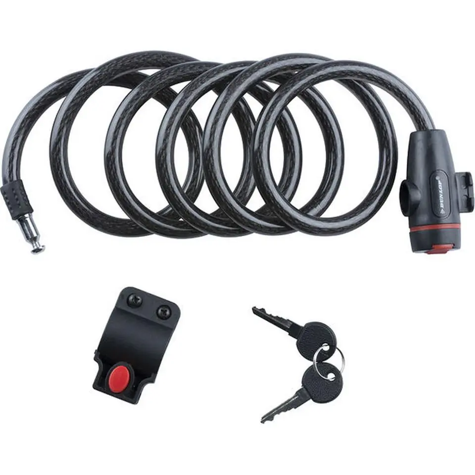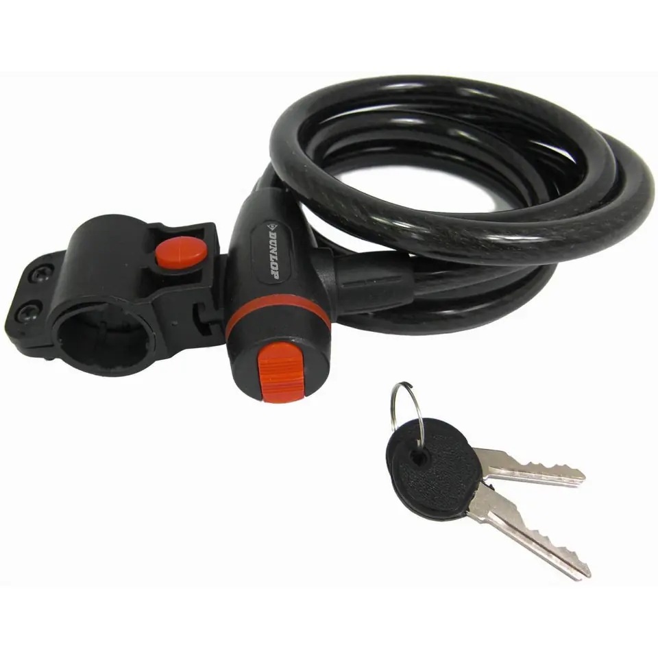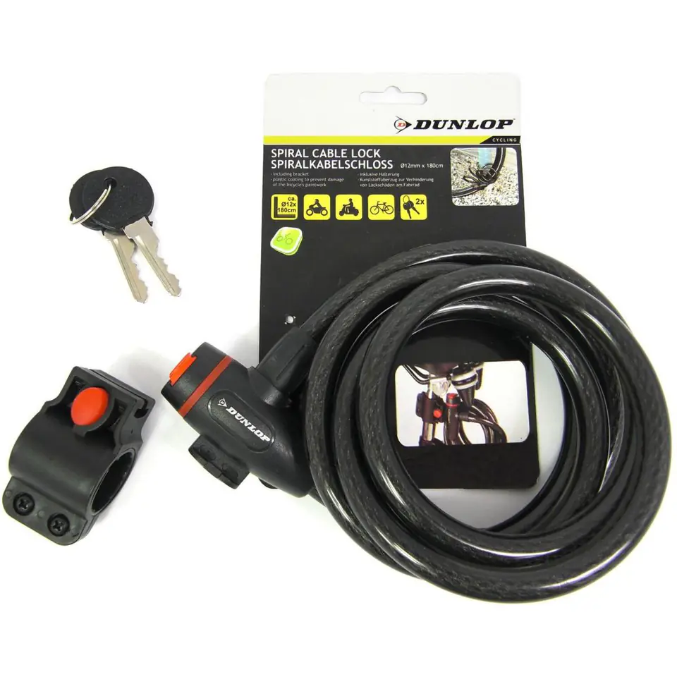 ZAPIĘCIE ROWEROWE DUNLOP SPIRALNE NA KLUCZ 1,2X180CM to bardzo praktyczny element wyposażenia Twojego roweru. Sprawdzi się zarówno podczas krótkich, jak i długich wycieczek rowerowych poza miasto. Jego kształt przypomina spiralę, która zwija się i w trakcie przechowywania zajmuje naprawdę niewiele miejsca. Z kolei jego serce to linka pokryta miękkim tworzywem sztucznym, które ma zapobiegać powstawaniu ewentualnych zarysowań ramy roweru.