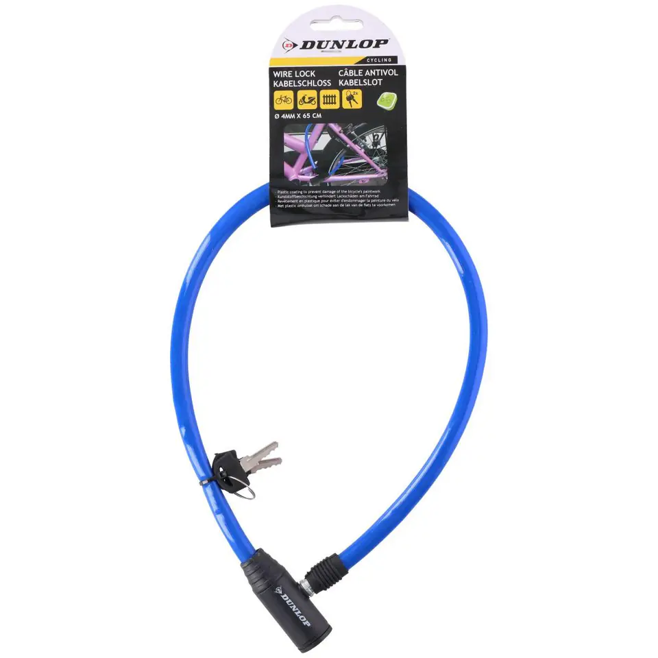 Parametry:- Długość całkowita zapięcia ok.: 65 cmGrubość linki z otoczką z tworzywa sztucznego: 10 mmGrubość stalowej linki ok.: 4 mmMateriał: tworzywo sztuczne, stalWaga netto ok.: 0,114 kgWaga brutto ok.: 0,130 kgTyp zamknięcia: zamek na kluczykZapasowy kluczyk: tak, 2 szt.Kolor: niebieskiMarka: DunlopWymiary opakowania (blister): 18 x 3 x 26 cm (szer. x gr. x wys.)
