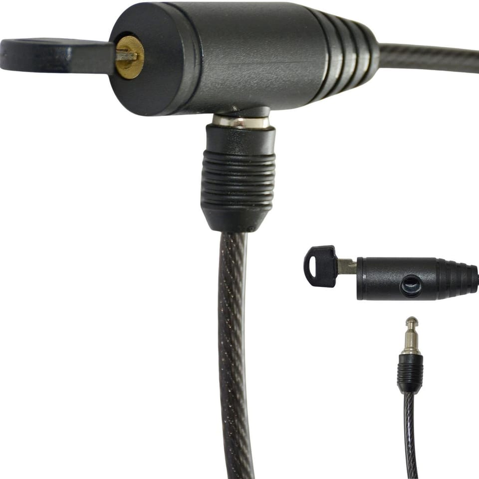 Całkowita długość zapięcia wynosi 90 cm, dzięki czemu bez problemu przypniesz go do stałych elementów infrastruktury, na przykład poręczy lub stojaka na rowery. Średnica linki to 6 mm, dzięki czemu stanowi ona dobrą ochronę przed kradzieżą. Zamykanie i otwieranie blokady jest bardzo proste, odbywa się przez odpięcia lub zapięcie zamka przy pomocy kluczyka.