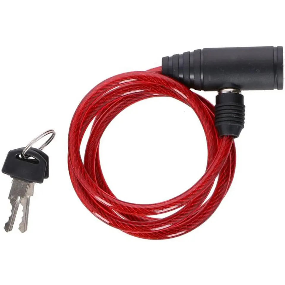 Całkowita długość zapięcia wynosi 90 cm, dzięki czemu bez problemu przypniesz go do stałych elementów infrastruktury, na przykład poręczy lub stojaka na rowery. Średnica linki to 6 mm, dzięki czemu stanowi ona dobrą ochronę przed kradzieżą. Zamykanie i otwieranie blokady jest bardzo proste, odbywa się przez odpięcia lub zapięcie zamka przy pomocy kluczyka.