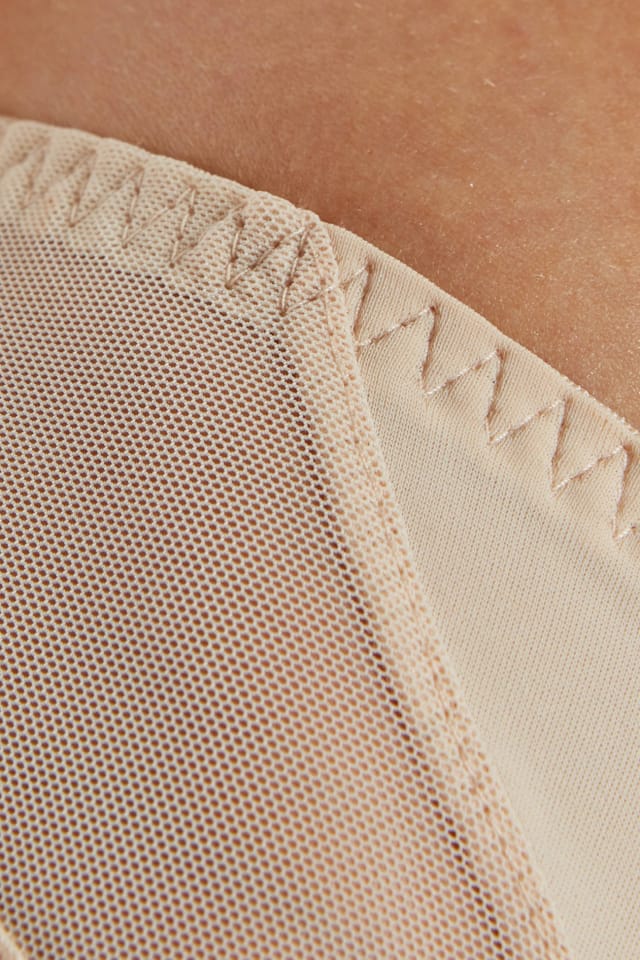 - Gładki, nieodznaczający się pod ubraniem tył dzięki wykończeniu z podwójnego tiulu elastycznego,
