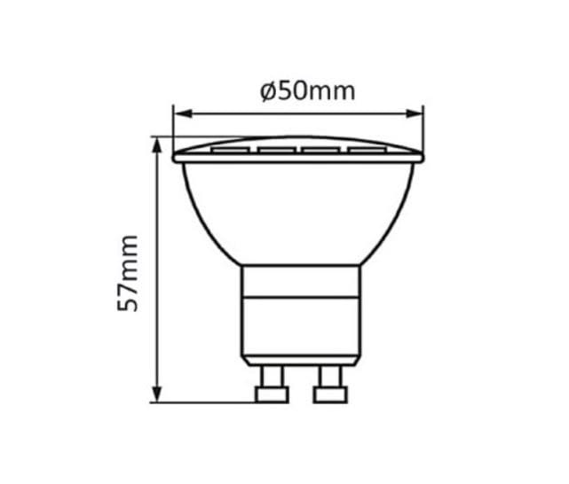 Wysokiej jakości energooszczędna żarówka LED o mocy 7W z mocowaniem opartym na gwincie GU10. Jest odpowiednikiem zwykłej żarówki o mocy 60W.