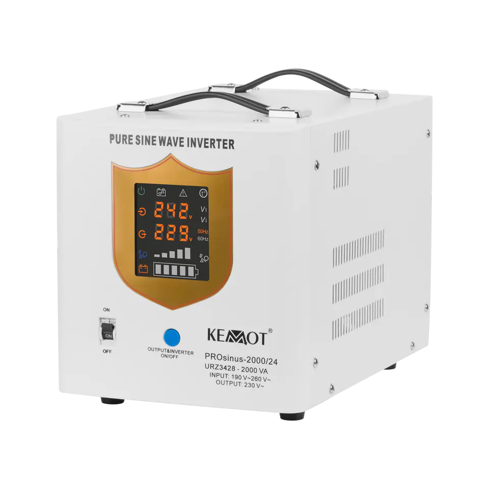 Zasilacz awaryjny KEMOT PROsinus-2000/24 przetwornica z czystym przebiegiem sinusoidalnym i funkcją ładowania 24V 230V 2000VA/1400W