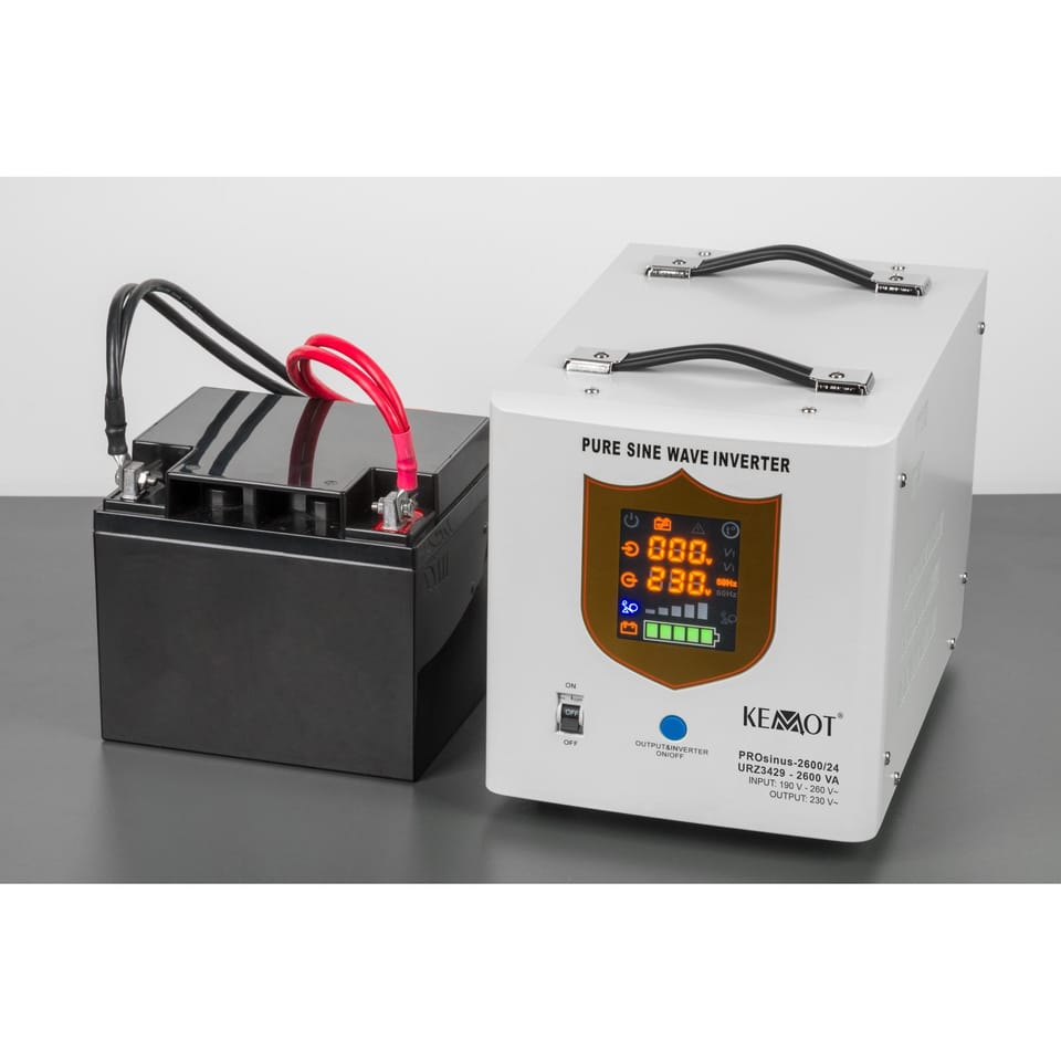 Zasilacz awaryjny KEMOT PROsinus-2600/24 przetwornica z czystym przebiegiem sinusoidalnym i funkcją ładowania 24V 230V 2600VA/1800W