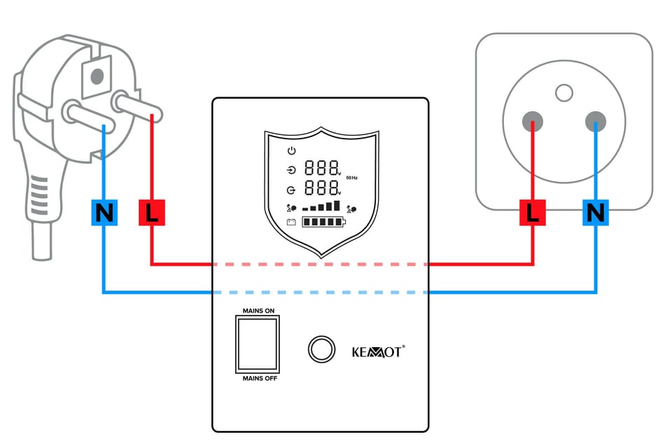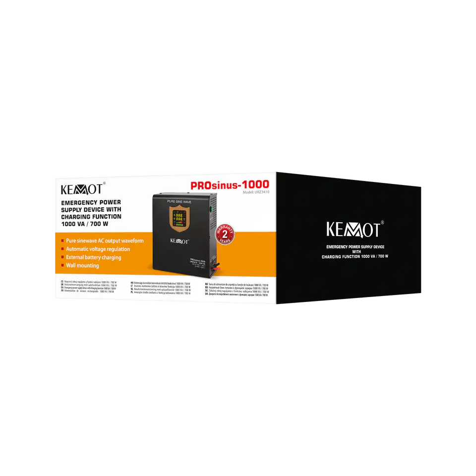 Zasilacz awaryjny naścienny KEMOT PROsinus-1000 przetwornica z czystym przebiegiem sinusoidalnym i funkcją ładowania 12V 230V 1000VA/700W