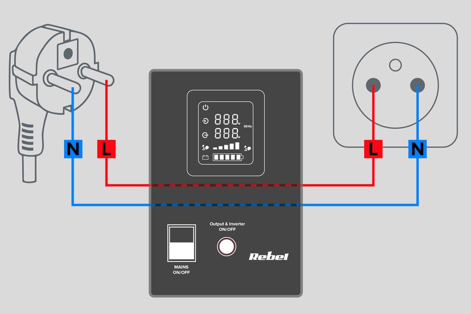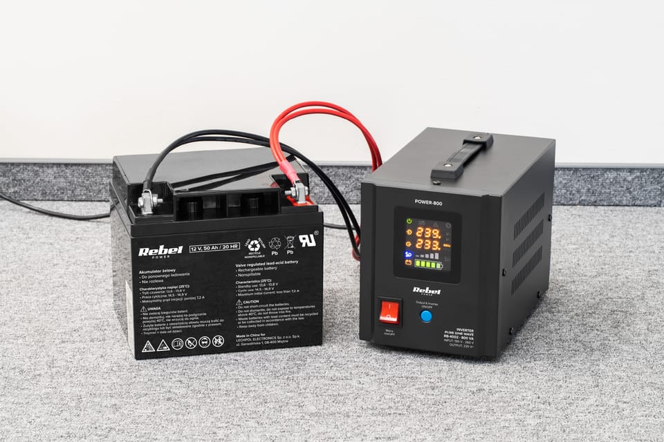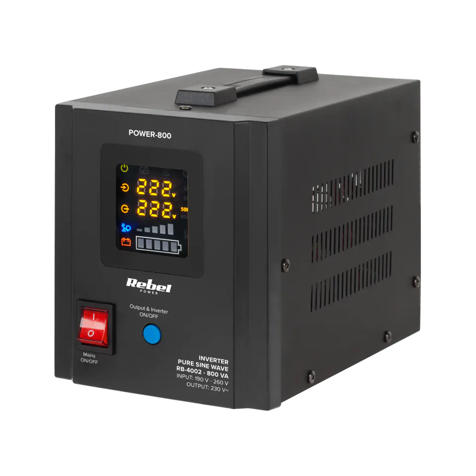 Zasilacz Awaryjny Rebel POWER-800 - przetwornica z czystym przebiegiem sinusoidalnym i funkcją ładowania 12V 230V 800VA/500W