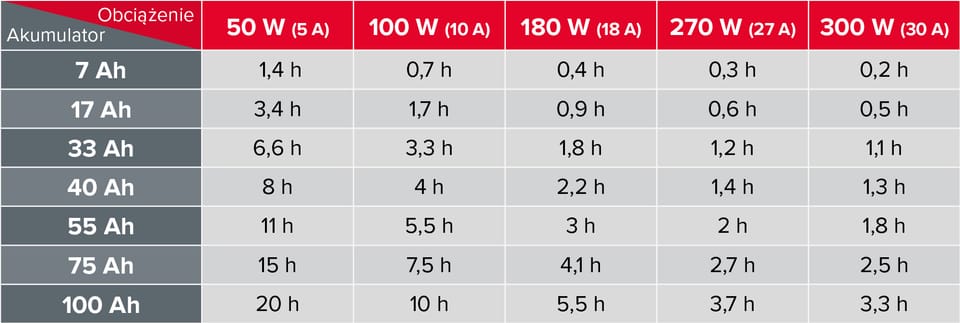 Moc znamionowa: 500 WRodzaj baterii: 12 V DCMaksymalne napięcie akumulatora: 15 V DCZakres napięcia wejściowego: 150 - 270 V ACCzęstotliwość wejściowa: 45 - 60 HzZakres napięcia wyjściowego: 230 V AC +/-5% / Inwerter: 230 VAC +/-3%Częstotliwość wyjściowa: 50/60 Hz +/-0,5 HzKształt napięcia wyjściowego: Czysta sinusoidaEfektywność wyjściowa: >= 85% (DC na AC)Prąd ładowania akumulatora: Maks. 10 APojemność akumulatora: 50-200 Ah (sugerowana: 55 Ah)Szacunkowy czas ładowania: 4-14 godz (zależny od pojemności akumulatora)Czas przełączania: =< 4 ms Zabezpieczenia: Przed przeciążeniem, zwarciem, zbyt wysokim lub zbyt niskim napięciemDopuszczalna temperatura pracy: 0 - 40°CDopuszczalna wilgotność powietrza: 10 - 90%Wymiary: 235 x 143 x 178 mmWaga: 4,3 kg