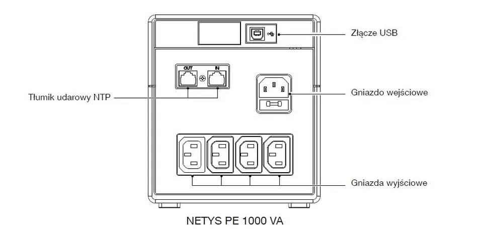 Zasilacz UPS NETYS PE moc 1000VA/600W 230V 50/60Hz, automatyczna regulacja napięcia AVR, bateria wewnętrzna, 4xIEC 320 C13 (10A), ochrona linii danych NTP, port USB, wyświetlacz LCDIdealna, niedroga ochrona do zastosowań SOHO i punktów sprzedaży- Przystosowane do ochrony urządzeń informatycznych w domach, biurach i punktach handlowych.- Pełna gama sześciu modeli umożliwia dobranie odpowiedniego urządzenia do poboru mocy odbioru i uzyskanie żądanego czasu podtrzymywania.Prosta obsługa- Panel sterowania z graficznymi ikonami- Zasilanie gwarantowane oraz ochrona przed wahaniami napięcia- Funkcja automatycznej regulacji napięcia (AVR) umożliwia stabilizację napięcie wyjściowego i zapobiega przełączaniu się na tryb pracy z baterii wydłużając czas podtrzymania.Łatwe podłączenie- Gniazdka IEC 320 (standardowe IT) upraszają podłączenie komputerów oraz urządzeń peryferyjnychOchrona linii transmisji danych:- Zintegrowane zabezpieczenia przewodów NTP chroniące połączenia danych LAN i ADSL przed przepięciami
