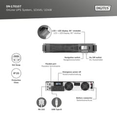 :Producer product name - OnLine UPS Module DN-170107, 10000VA/10000W 2U LCD, LED, Pure Sine Wave, 86.5 x 440 mm x 620 mm, 18kgProducer product family - OnLine UPSTechnical details:Pojemność - 10000Producer - DigitusPraca:Pojemność - 10000