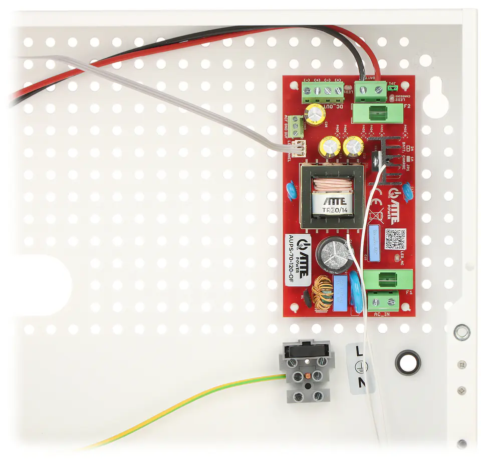 Wybrane cechy:Sygnalizacja LED Sprawność : 90 % @ 70 W Wyjścia techniczne typu OC sygnalizujące zanik napięcia na wyjściu zasilacza (OUF) oraz zanik napięcia w sieci 230V (ACF) Główne przepusty kablowe z tyłu obudowy Rastrowy system montażu modułów (kompatybilny z urządzeniami marki ATTE) - 10.8 mm raster Montaż do ściany Do zastosowań wewnętrznych Klasa szczelności : IP20