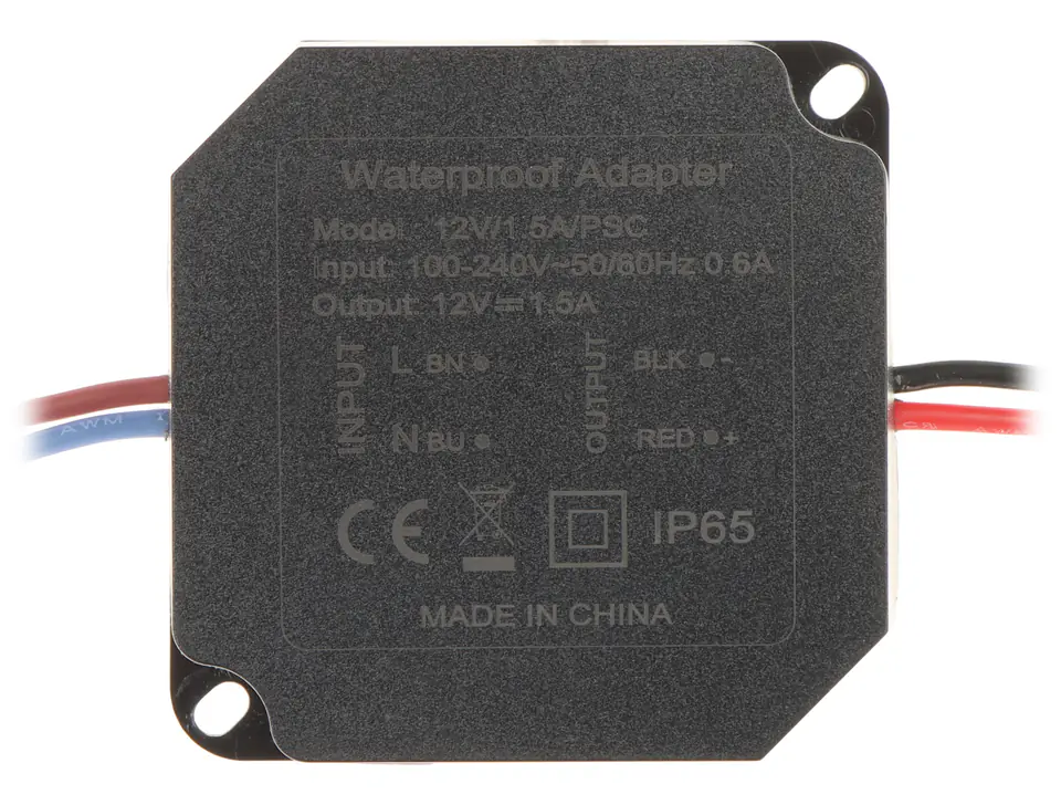 Hermetyczny zasilacz w obudowie z tworzywa sztucznego, przeznaczony w szczególności do zasilania oświetlaczy diodowych LED / IR LED