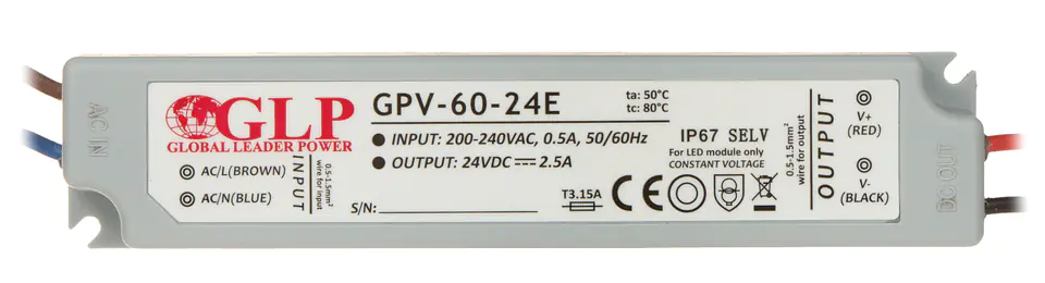 Hermetyczny zasilacz w obudowie z tworzywa sztucznego