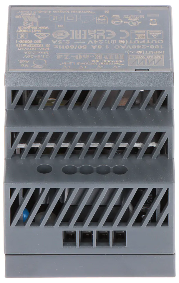 Zasilacz impulsowy instalowany na szynie TS35/7.5 lub 15 DIN, odporny na wysokie temperatury pracy (do 70°C)