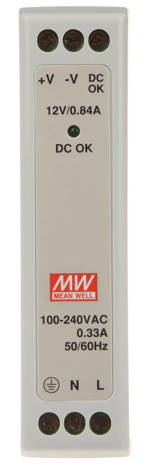 Zasilacz impulsowy instalowany na szynie TS35/7.5 lub 15 DIN, odporny na wysokie temperatury pracy (do 70°C)